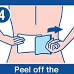 Adultes et enfants de 12 ans et plus : Nettoyer et sécher la zone affectée. Retirez le timbre du film et appliquez-le sur la peau (voir illustration). Appliquer sur la zone affecté pas plus de 3 fois par jour. L'application devrait étre supervisée par un adulte. Ne pas utiliser plus de 3 timbres par jour. Enlevez le timbre de la peau apres une application d'au plus 8 heures.