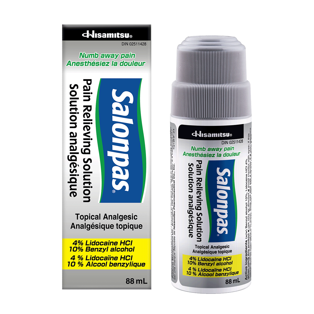Vous voulez découvrir une nouvelle façon de traiter la douleur? Essayez la nouvelle Salonpasᴹᴰ Solution analgésique. Elle anesthésie la douleur grâce à deux anesthésiques cliniquement étudiés (lidocaïne et alcool benzylique) qui commencent à agir dès le contact et procurent un soulagement ciblé, sans gâchis et sans odeur.
